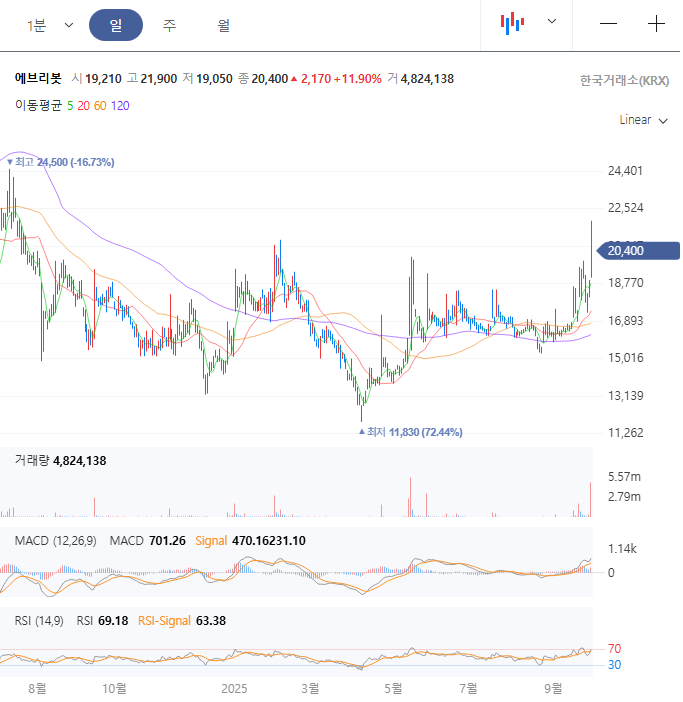 에브리봇은 대한민국의 대표적인 AI 기반 청소 로봇 전문 기업으로 가정용 로봇 청소기 제조 및 판매를 주력으로 하는 기술 중심의 스타트업입니다. 2015년 설립 이후 빠르게 성장하며 국내 로봇 산업의 선두주자로 자리 잡았으며 2021년 코스닥 상장 이후 글로벌 시장 확대를 모색하고 있습니다. 물걸레 로봇청소기 분야에서 세계 최초 듀얼스핀 기술을 선보이며 인지도를 쌓았습니다.